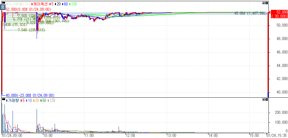 금일 코스닥시장에 신규 상장한 케이옥션의 주가는 공모가 20,000원을 상회한 40,000원에 시초가를 형성한 뒤 상한가를 기록했는데요.