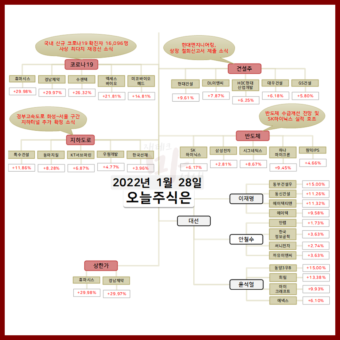 2022년 1월 28일 오늘의 상한가 종목 및 이유 :: 휴마시스 경남제약 주가 외 진단키트 관련주