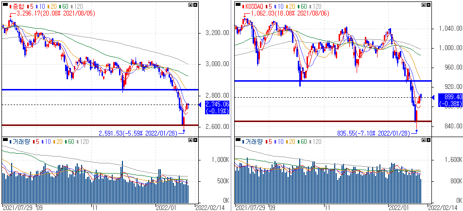 금일 코스피 지수는 -0.19% 하락한 2,745.06에 마감하였고, 코스닥 지수는 -0.38% 하락한 899.40에 마감하였습니다. 미국 고용지표 호조에 따른 경기 정상화와 매파적인 통화정책 우려에 외국인과 기관 매도세에 하락했습니다.