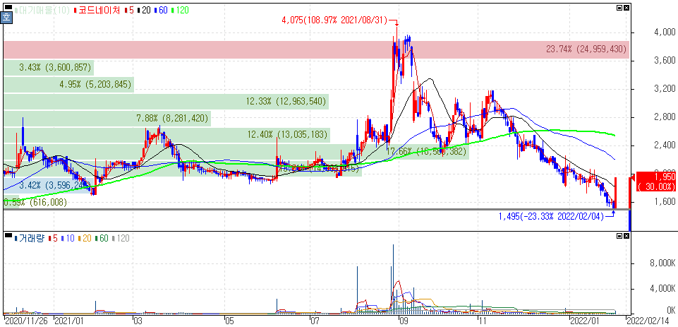 코드네이처는 신재생에너지 사업을 영위하는데 2030년 총에너지의 11%를 신재생에너지로 보급한다는 장기적인 목표하에 신재생에너지기술개발 및 보급사업 등에 지원 강화가 예상되는 종목이기도 합니다. 다만 저항구간 돌파여부가 중요한 상황에서 아무래도 수급을 검토해 복기하면서 공부해 볼 필요가 있습니다.