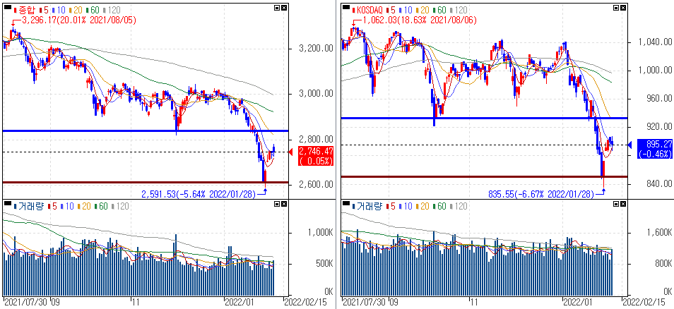금일 코스피 지수는 +0.05% 상승한 2,746.47에 마감하였습니다. 코스닥 지수는 -0.46% 하락한 895.27에 마감하였습니다. 중국 증시 하락과 미국 국채 금리 급등에 따른 외국인 매도에 상승폭이 제한되며 마감하였습니다.