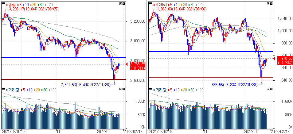 금일 코스피 지수는 +0.81% 상승한 2,768.85에 마감하였고, 코스닥 지수는 +1.70% 상승한 910.53에 마감하였습니다.