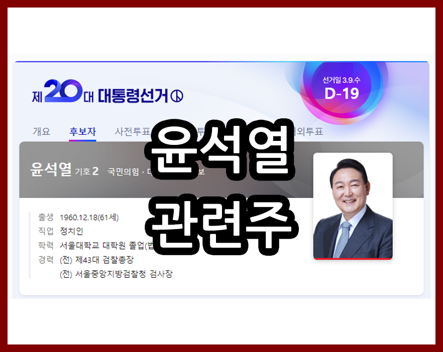 위 링크에서도 윤석열 관련주 종목을 확인해 볼 수 있습니다.