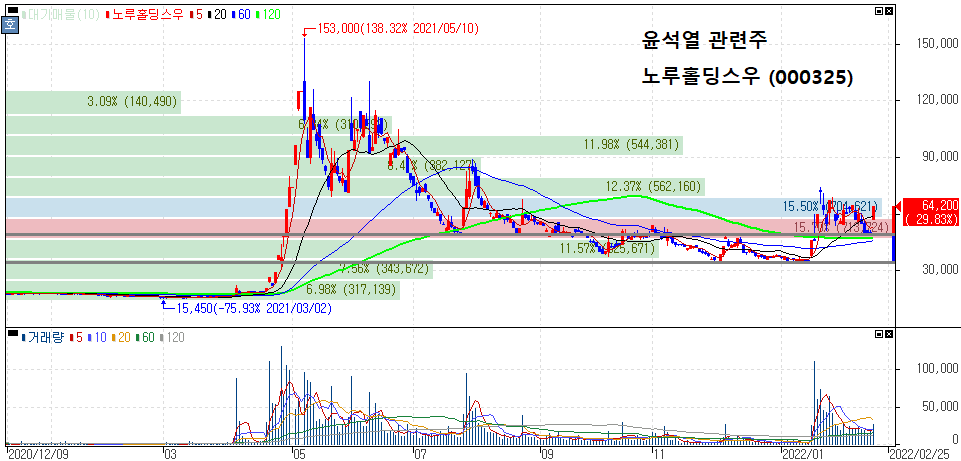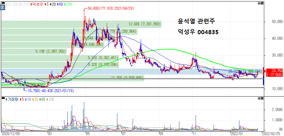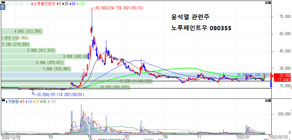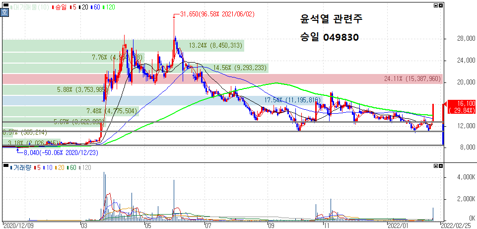 윤석열 관련주 종목들은 대체로 작년 상반기 고점을 형성한 이후 시세 하락세를 보여주고 있습니다.