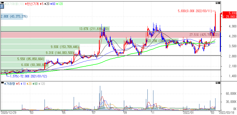 2022년 3월 11일 오늘의 상한가 종목 및 이유 :: 한신기계 일진파워 이화공영 데이타솔루션 KD 주가 외