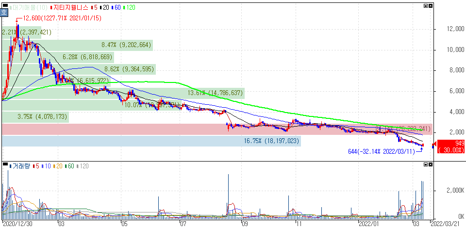 지티지웰니스 시가총액은 181억원으로 지난달 내부결산시점 관리종목 지정 관리종목 지정 및 상장폐지 사유가 발생했던 종목입니다.