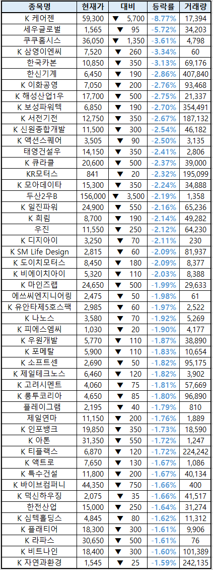 (종목명 앞에 'K'는 코스닥 종목을 의미합니다.)