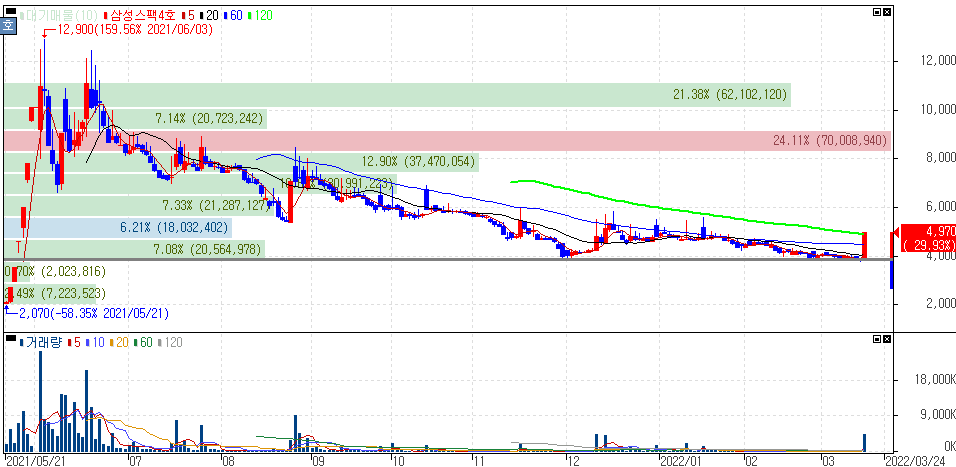 삼성스팩4호 같은 경우 과거에도 구체적인 사유 없이 상한가를 기록했던 스팩종목이기도 합니다.