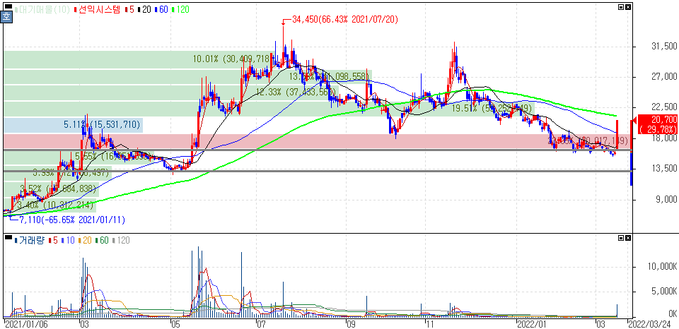 2022년 3월 17일 오늘의 상한가 종목 및 이유 :: 버킷스튜디오 선익시스템 삼성스팩4호 주가 외