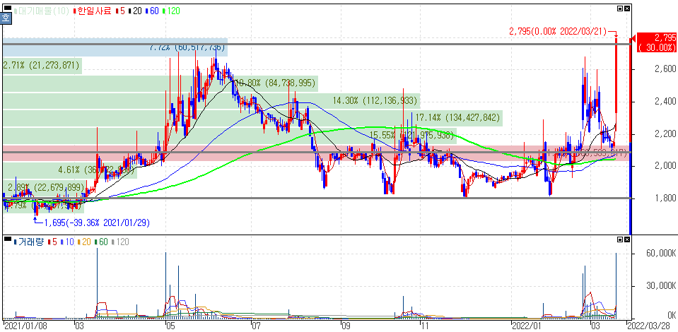 2022년 3월 21일 :: 오늘의 상한가 종목 및 이유