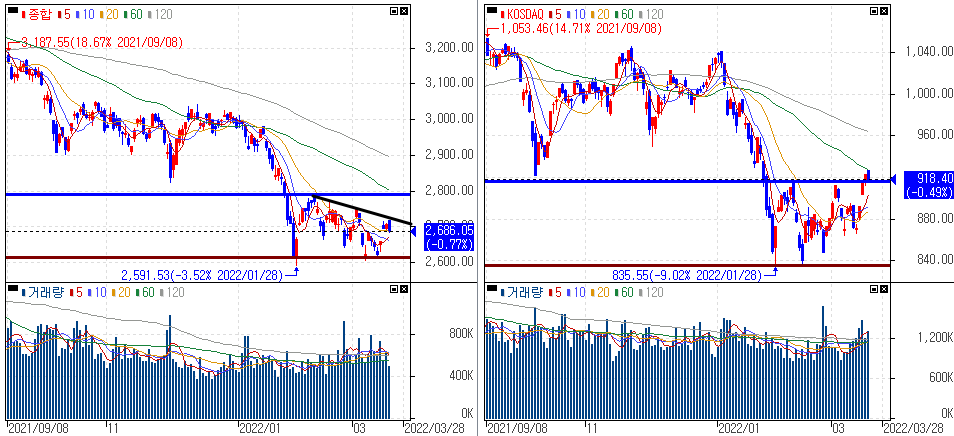 2022년 3월 21일 :: 코스피 코스닥 지수