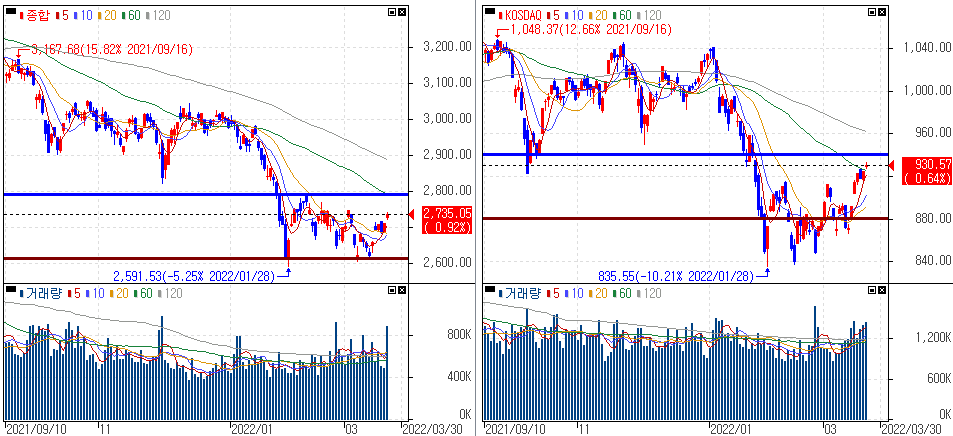 금일 코스피 지수는 +0.92% 상승한 2,735.05에 마감하였고, 코스닥 지수는 +0.64% 상승한 930.57에 마감하였습니다. 美 증시 상승에 이어 외국인과 기관의 동반 순매수세에 상승을 보였습니다.