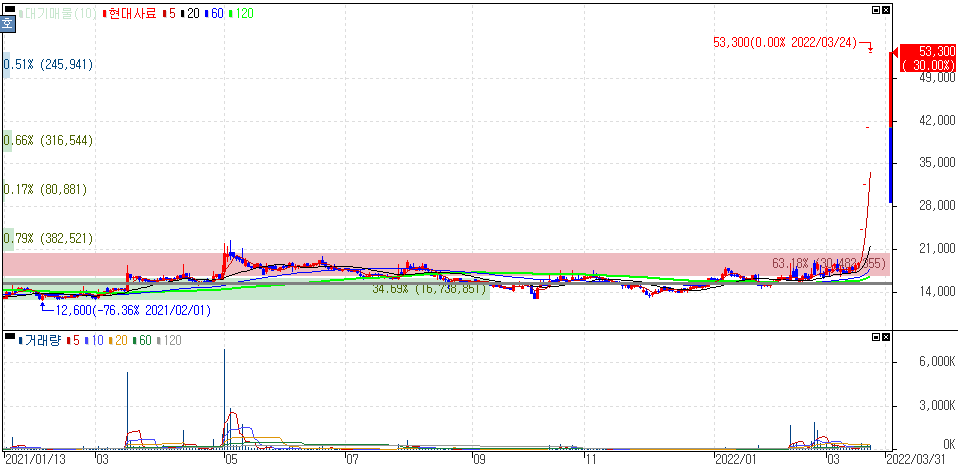 러시아-우크라이나 침공 사태가 장기화 되면서 곡물가가 폭등하고 있죠. 게다가 현대사료의 경우는 최대주주 변경 이슈까지 겹쳤죠. 그러면서 4거래일 연속 상한가를 기록하고 있습니다.