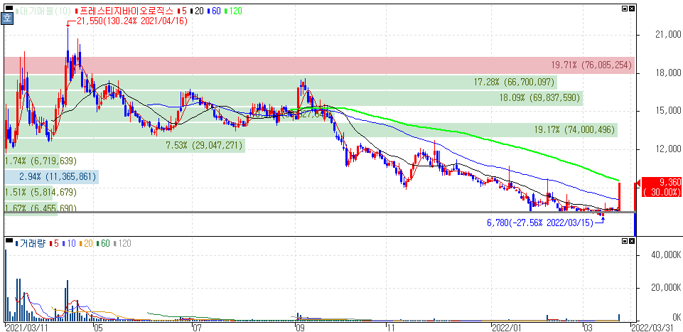 2022년 3월 24일 오늘의 상한가 종목 및 이유 :: 프레스티지바이오파마 동원수산 한성기업 오리콤 씨씨에스 주가 외