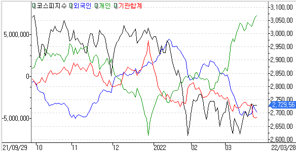 금일 코스피 지수는 -0.02% 하락한 2,729.56에 마감하였고, 코스닥 지수는 -0.81% 하락한 927.11에 마감하였습니다. 美 국채금리 급등과 국제유가 강세가 美 증시 영향을 이어 받은 가운데 중국 상하이의 코로나 봉쇄로 인한 경제 충격 더해져 투자심리에 위축되는 모습이였습니다.