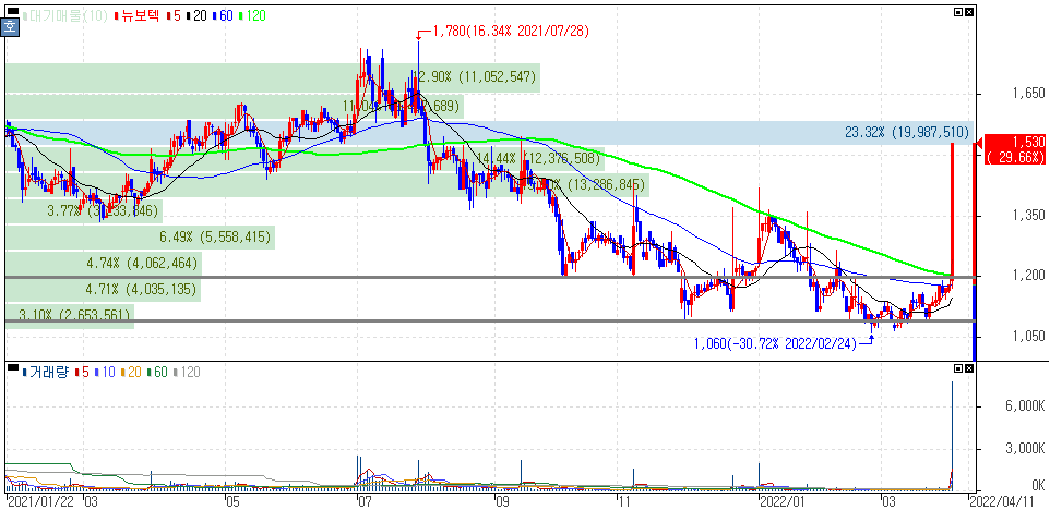 2022년 4월 4일 오늘의 상한가 종목 및 이유 :: 이엔플러스 룽투코리아 드래곤플라이 뉴보텍 주가 외