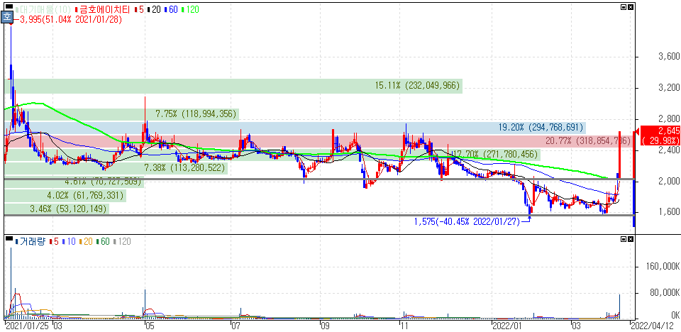 2022년 4월 5일 오늘의 상한가 종목 및 이유 :: 금호에이치티 유앤아이 큐캐피탈 주가 외