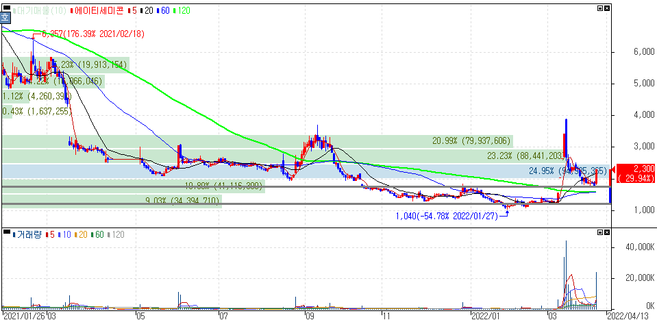 구체적인 재료가 노출된 것은 아니지만 지난 3월에 운영자금 조달을 위해 101억원 규모의 제3자배정 유상증자를 결정했던 에이티세미콘 입니다.