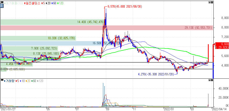 일진그룹, PI첨단소재 인수전 참여 소식에 상한가를 기록한 일진홀딩스 주가 입니다.