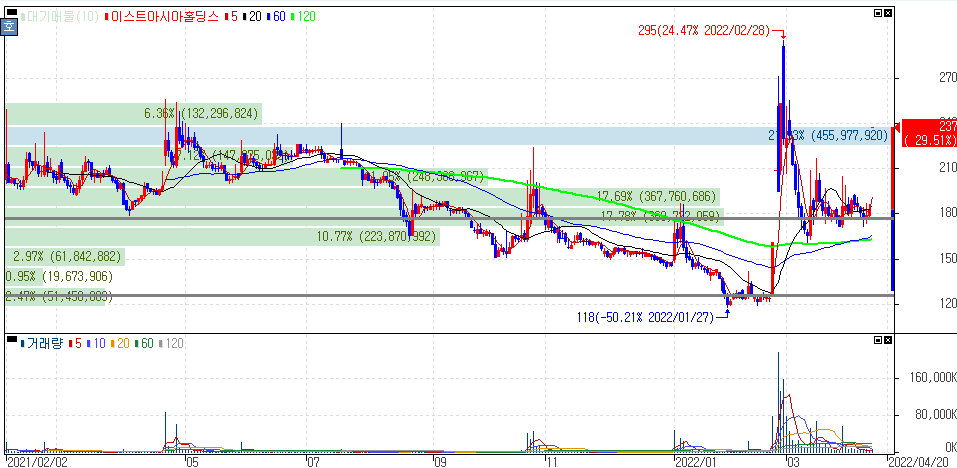 중국 상하이 일부 봉쇄 해제 소식에 중국 관련주 상승 속 상한가를 기록한 로스웰, 이스트아시아홀딩스 주가 입니다.