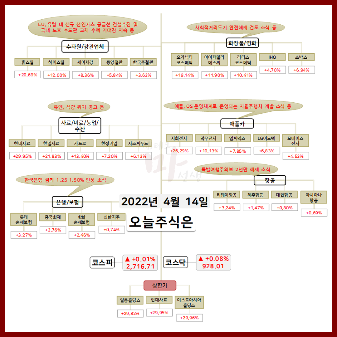 2022년 4월 14일 오늘의 상한가 종목 및 이유 :: 일동홀딩스 현대사료 이스트아시아홀딩스 주가 외 지난 뉴욕증시는 실적 개선 기대감 및 인플레이션 정점 통과 기대감 등에 상승을 보였는데요. 다