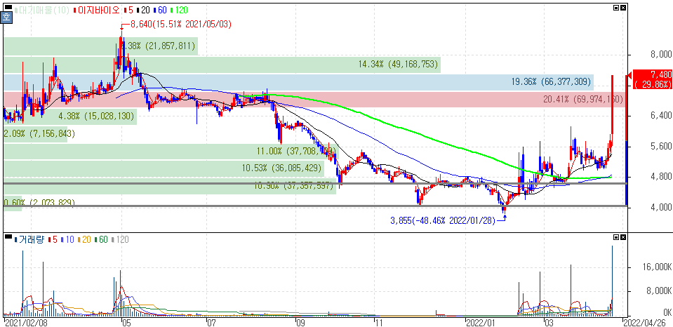 그동안 러시아-우크라이나 전쟁으로 인해 사료, 비료, 농업 관련주 종목들이 워낙의 강세를 보이고 있었는데 이지바이오, 이지홀딩스 종목은 비교적 주가 상승률이 충분히 나와주지 못할 이유가 없었죠.