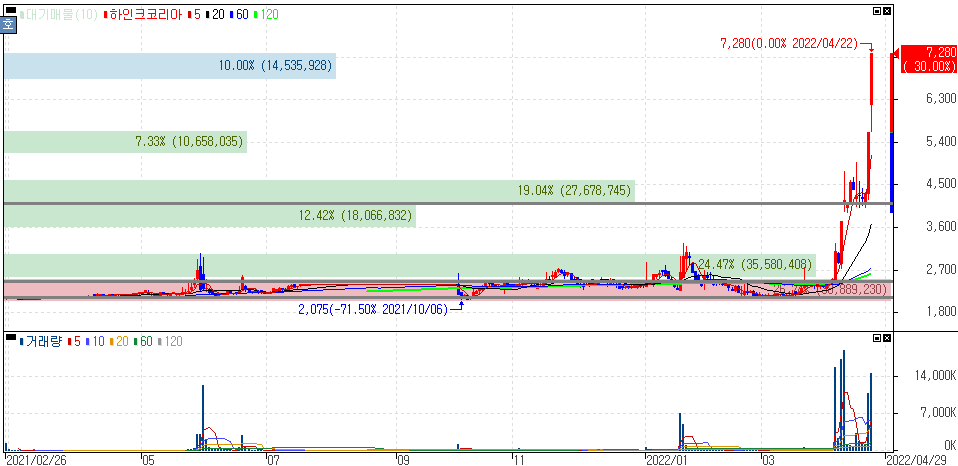 4월에 각종 지표에서 자주 출현하는 하인크코리아 입니다. 모바일 간편결제 신규 사업으로 하는 '바로다'와 관련한 소식은 이달 초부터 나왔던 내용이고, 하인크코리아와 관련해 기술적인 분석을 권해드려봤었습니다.