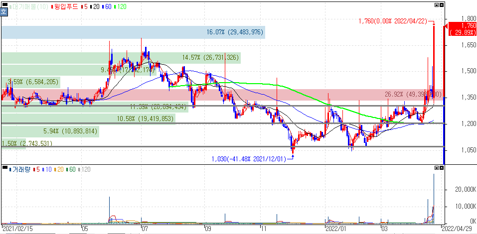2021년 4월 22일 오늘의 상한가 종목 및 이유 :: 고려산업 바이오에프디엔씨 윙입푸드 한탑 주가 외