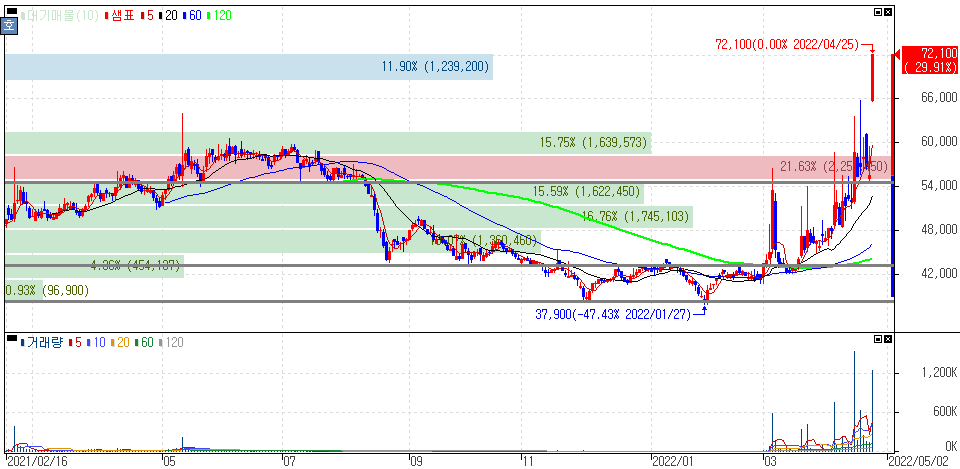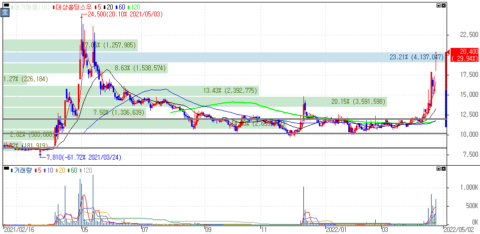 | 4월 20일 오늘의 상한가 종목 및 이유 :: 크라운제과 대상홀딩스우 금강철강 주가 외 (0) | 2022.04.20 |