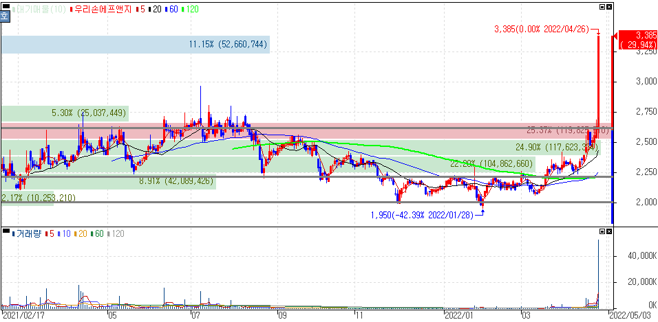 설령 상한가 종목을 보유하지 않으셨다고 조급하거나 심리적으로 위축되지 마시고, 현재 보유한 종목의 대응이나 앞으로 매매를 위한 그림을 그려나가는게 중요합니다.