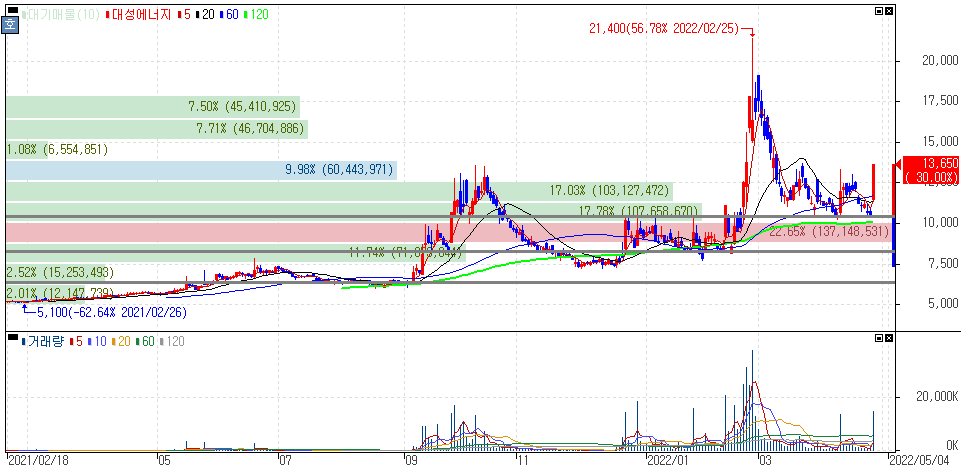 우선 기술적인 면에서 눈에 들어왔던 종목이라고 생각하신 투자자분들이 계실겁니다. 점진적으로 상승세를 보여왔던 대성에너지와 지에스이는 최근 구간에서 지지를 받는 흐름이였습니다.