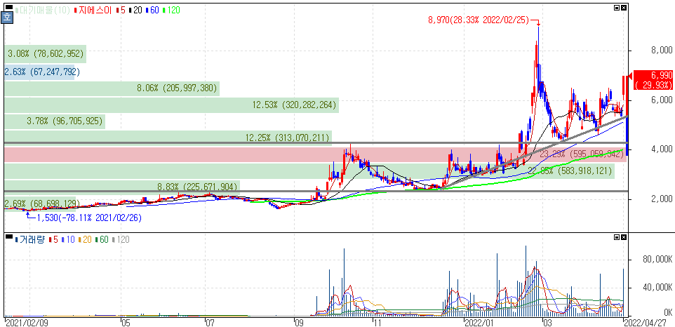 2022년 4월 27일 오늘의 상한가 종목 및 이유 :: 지에스이 대성에너지 골드앤에스 예스티 주가 외