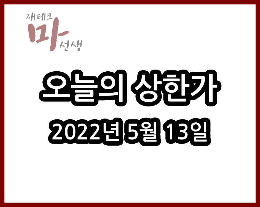2022년 5월 13일 오늘의 상한가 종목 및 이유 :: HLB생명과학 광명전기 마이더스AI 주가 외