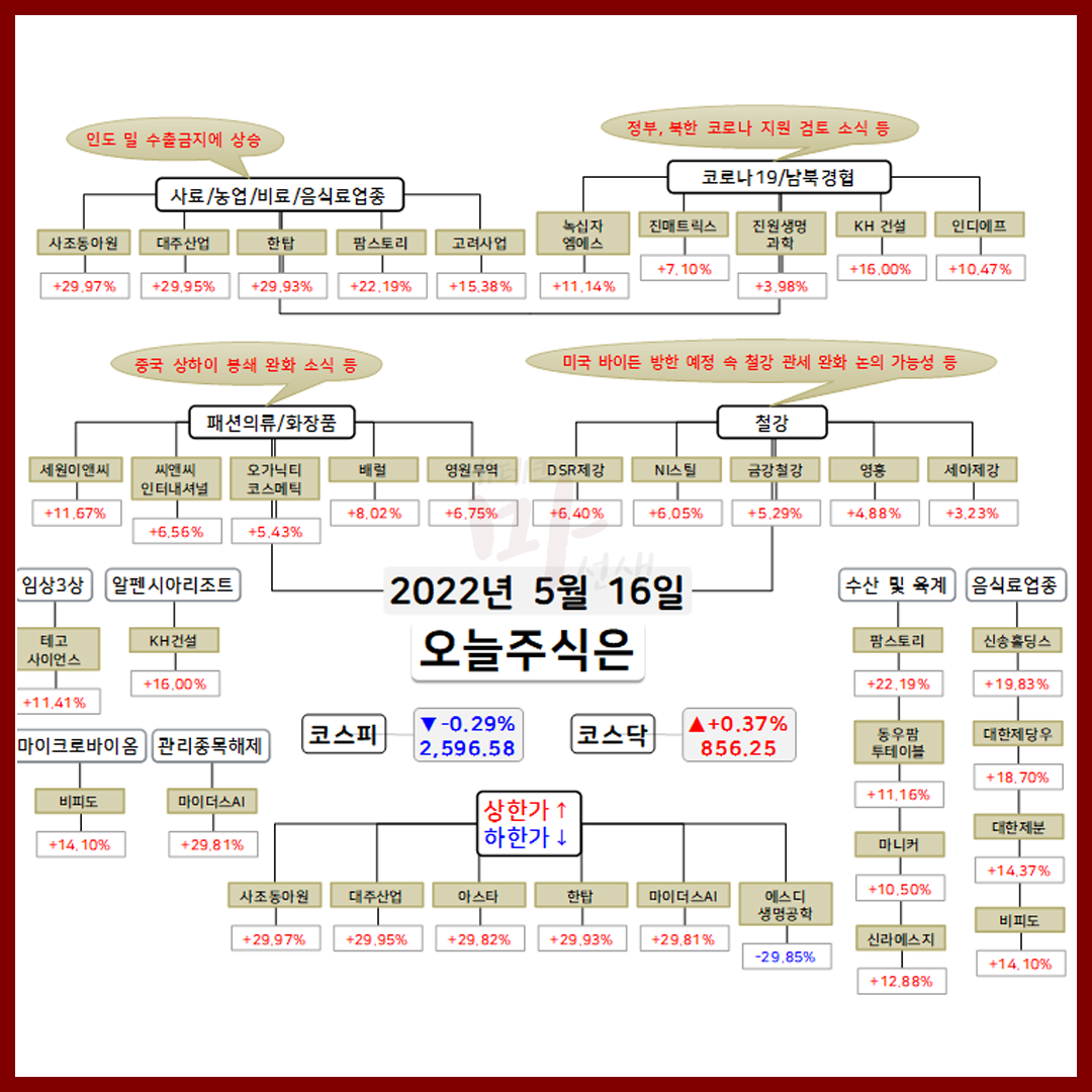 5월 16일 오늘의 상한가 종목 및 이유 :: 아스타 사조동아원 에스디생명공학 주가 외