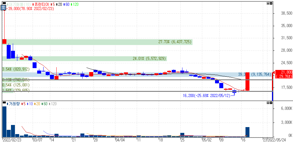2022년 5월 17일 오늘의 상한가 종목 및 이유 :: 퓨런티어 세동 대성산업 주가 외