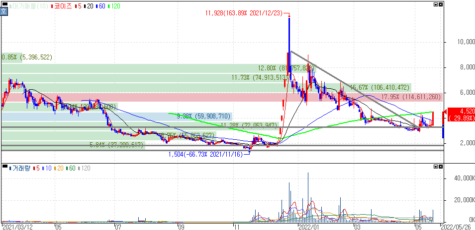 사실 작년부터 극단적인 주가 등락폭을 보이던 종목인데 사실 실질적인 수혜로 부각을 보인게 아니라 주의해야하죠.