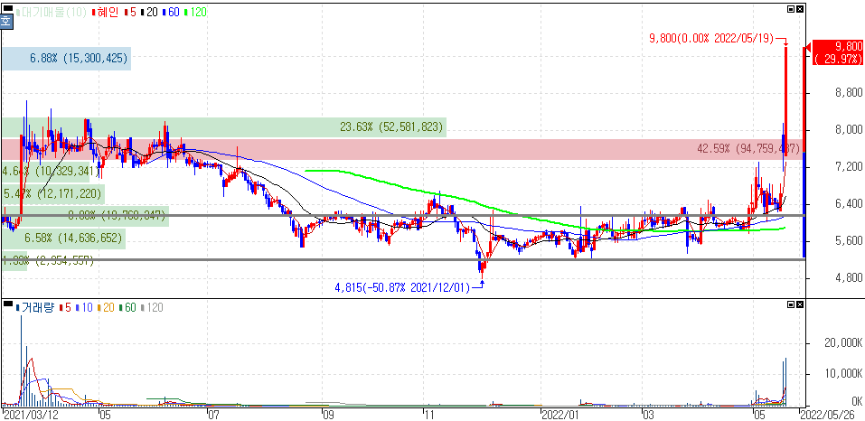 2022년 5월 19일 오늘의 상한가 종목 및 이유 :: 혜인 대명에너지 KH 건설 코이즈 주가 외