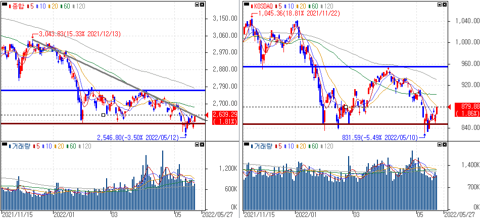 금일 코스피 지수는 +1.81% 상승한 2,639.29에 마감하였고, 코스닥 지수는 +1.86% 상승한 879.88에 마감하였습니다.