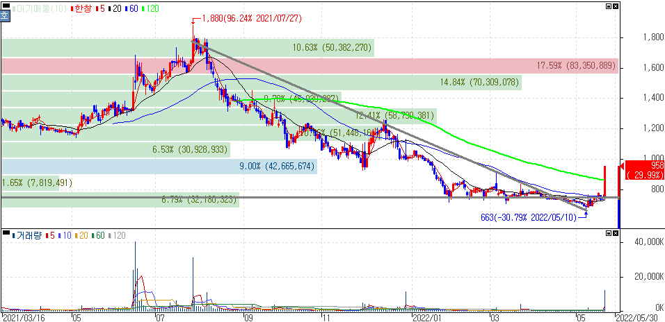 2022년 5월 23일 오늘의 상한가 종목 및 이유 :: 한창 주가 외