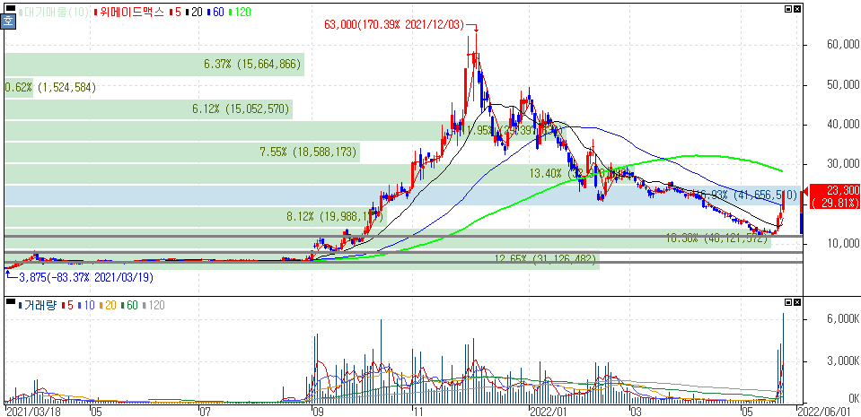 장현국 위메이드 대표, 위믹스 안정성 강조 소식 등에 상한가를 기록한 위메이드맥스 주가 입니다.