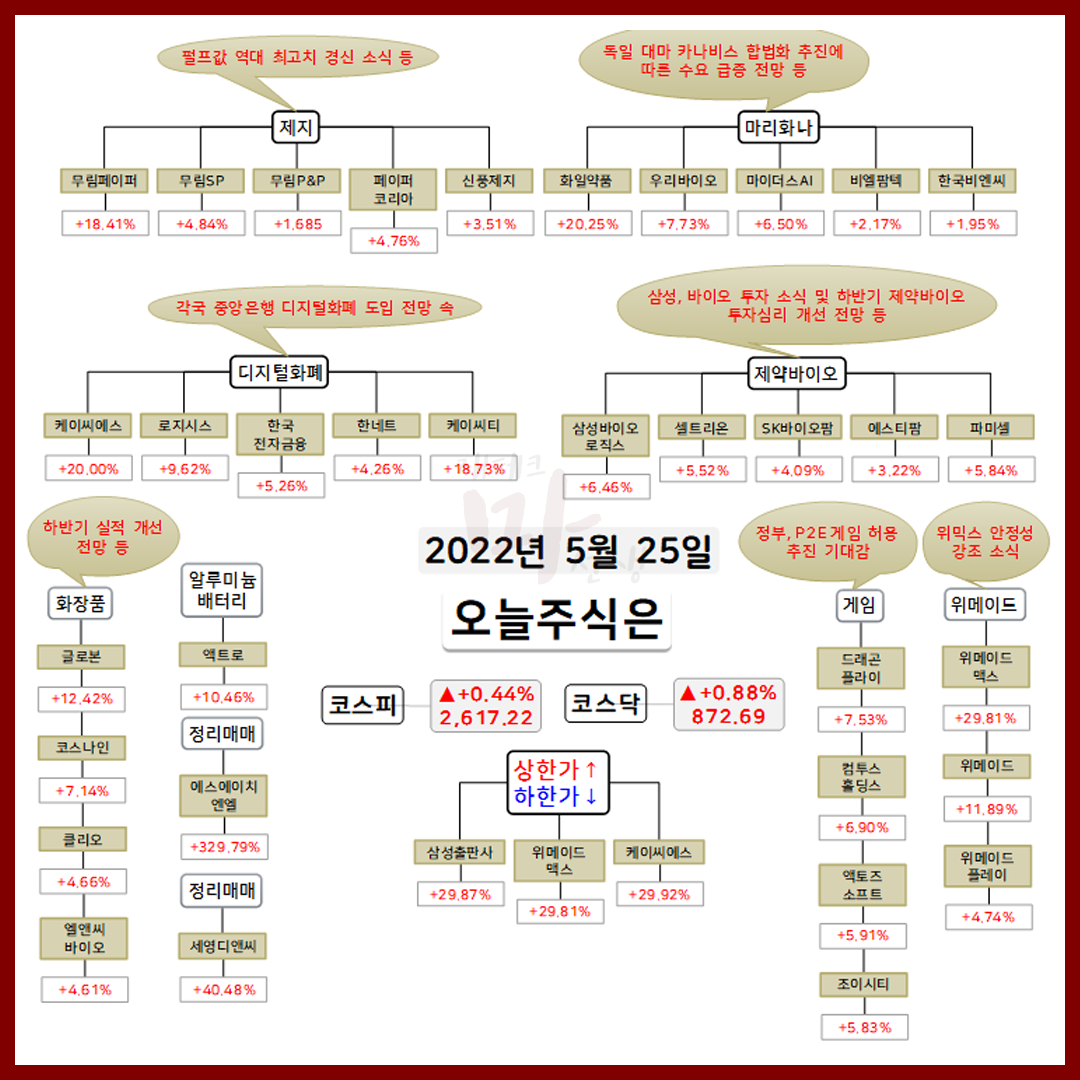 | 5월 24일 시간외 상승종목 상한가 및 이유 :: 무림P&P 무림SP 무림페이퍼 주가 외 (0) | 2022.05.24 |
