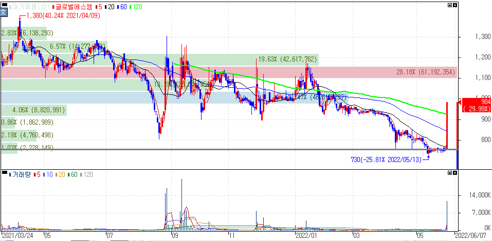 글로벌에스엠 같은 종목 특성을 잘 알고 있는 분들은 수익을 보셨겠지만 워낙 빠지고 있었던 종목이다보니 접근하기 다소 어려웠다 볼 수 있는 글로벌에스엠입니다.