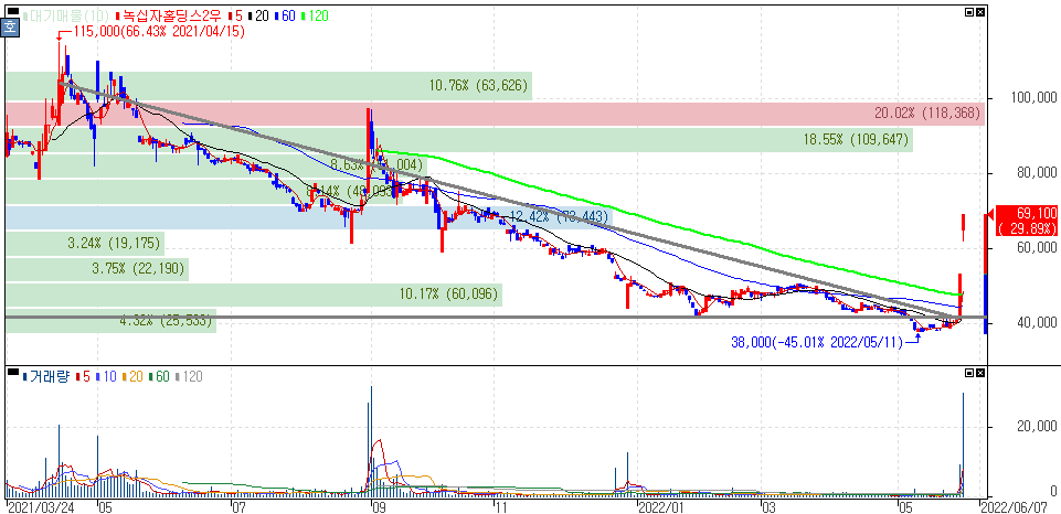 권리락 효과로 이렇게 상한가가 다시 한번 나와줬으니 이제 추가상승을 보인다 하더라도 주가 상승률에 대한 부담을 가질 필요가 있습니다.
