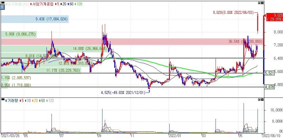 2022년 6월 3일 오늘의 상한가 종목 및 이유 :: 서암기계공업 대성엘텍 서연탑메탈 주가 외